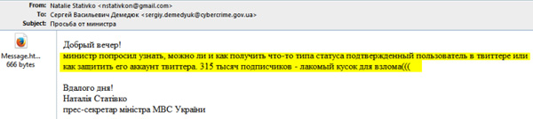 Также Аваков просил помощи у руководителя Управления по борьбе с киберпреступностью МВД Сергея Демедюка - чтобы разобраться с тем, как подвердить подлинность ааккаунта в твиттере. Это мило, правда?