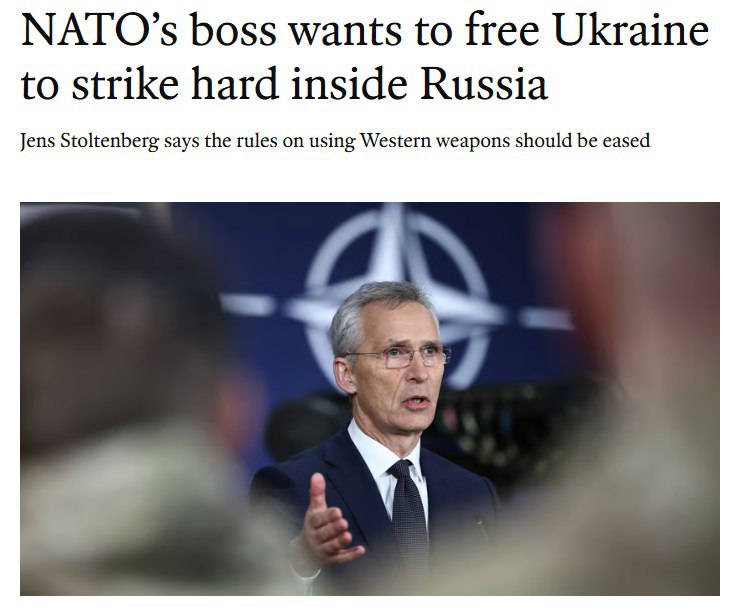 "Настав час союзникам подумати, чи варто їм зняти деякі обмеження, які вони наклали на використання зброї, яку вони надали Україні. Але ми не будемо безпосередньо брати участь з території НАТО у бойових діях над або на території України. Особливо зараз, коли у Харкові, Недалеко від кордону йде багато бойових дій, через те, що Україна не має можливості використовувати цю зброю проти законних військових цілей на території Росії, їй дуже важко захистити себе", - додав генсек.