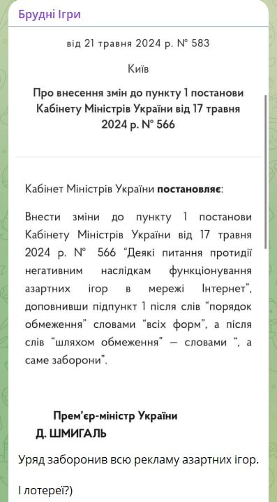 Журналіст Євген Плінський у своєму телеграм каналі опублікував скріншот постанови з сайту Верховної ради, де йдеться про зміни функціонування азартних ігор в мережі Інтернет.