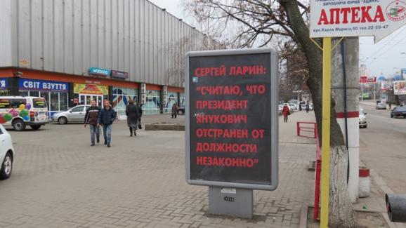 Ще один скандал вибухнув навколо Ларіна уже після втечі Януковича. ЗМІ розповсюдили коментар чиновника на одному з кіровоградських сайтів. Ларін начебто написав, що Янукович був відсторонений від влади незаконно і залишається легітимним президентом. В ЗМІ покотилася хвиля обурення, Ларіна звинуватили у виправдання масових вбивств на Майдані, а в Кіровограді з’явилися сіті-лайти з цією цитатою екс-губернатора. Проте коментар з сайту зник і про скандал підзабули.