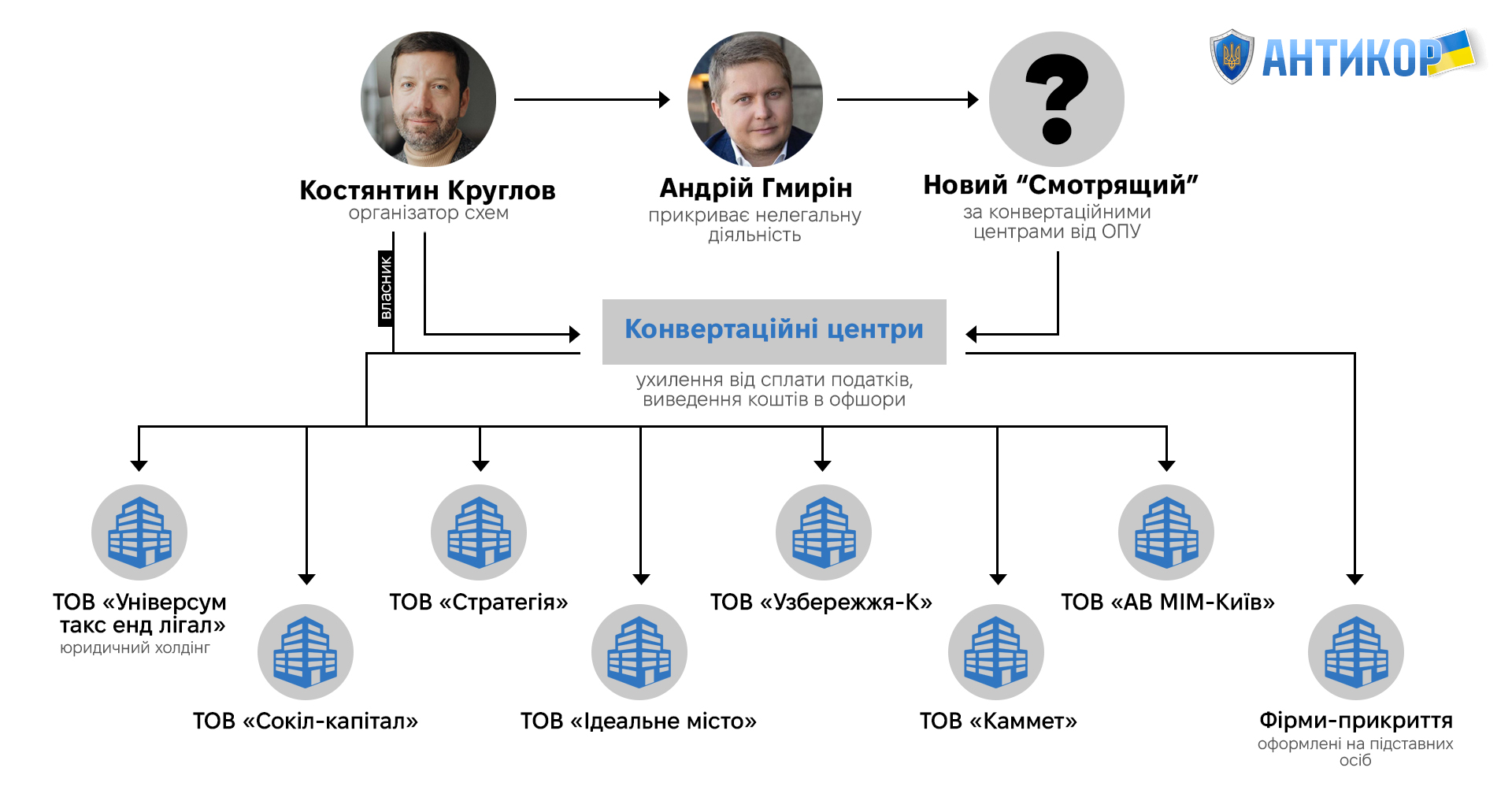 Тут же злилася чергова інформація, яка пояснювала, хто допоміг Костянтину Круглову уникнути санкцій, – виявилося, що прикрив його Андрій Гмирін, який є "смотрящим" від Офісу президента за конвертаційними центрами. Щоправда, з того часу ситуація дещо змінилася – Гмирін потрапив під прес НАБУ, яке зберігає залишки незалежності від ОПУ, й опинився у розшуку.