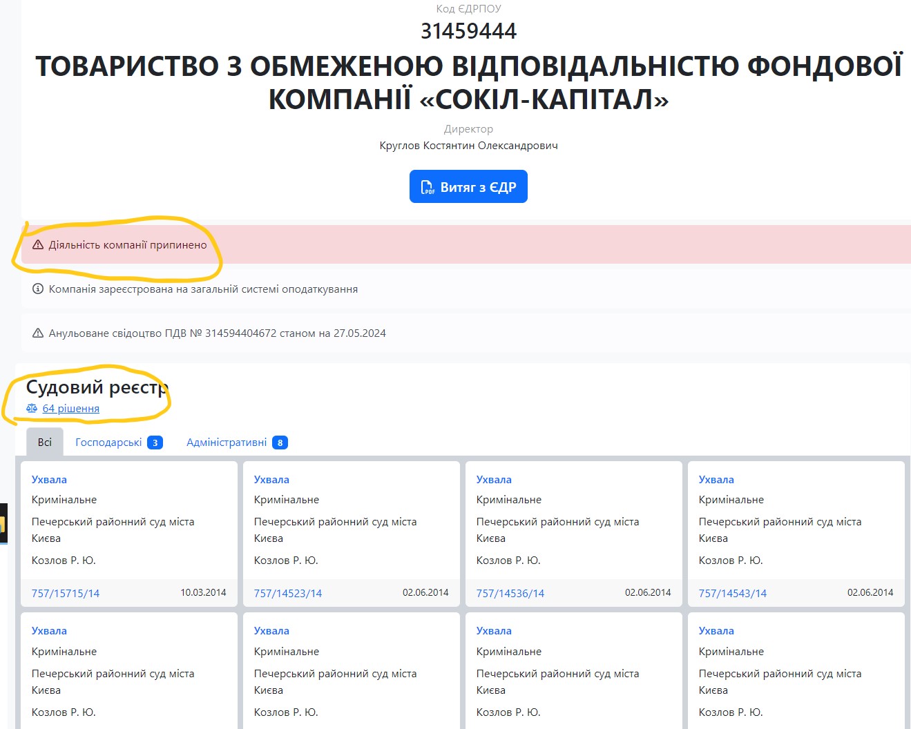 А ось – юридичні. Майже сімдесят рішень судів. І все – у рамках кримінального процесу.