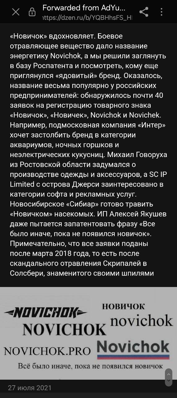 Правда це «охєрєнная забава», реєструвати бренд софта присвячений отруйній речовині, якою Путін вбиває особистих ворогів.