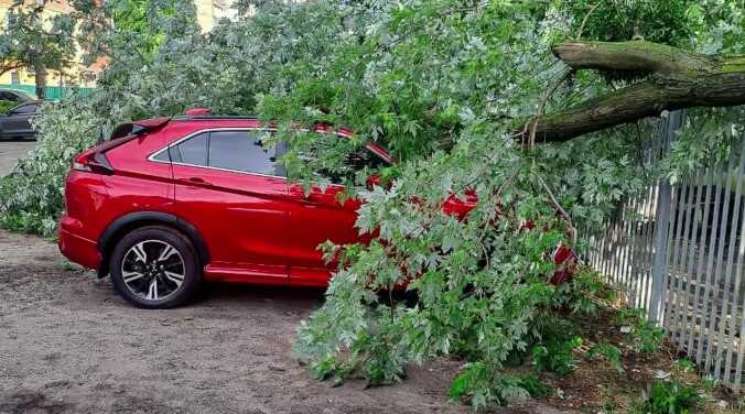 Водночас ДСНС Києва повідомляє про падіння дерева на автомобілі внаслідок негоди на вулиці Сосницькій. Жертв і постраждалих немає.