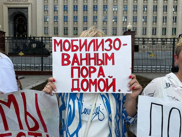 Місцеві ЗМІ повідомляють, що біля Міноборони РФ у Москві вийшли на пікет родичі мобілізованих на війну до України з вимогою повернути їх додому.