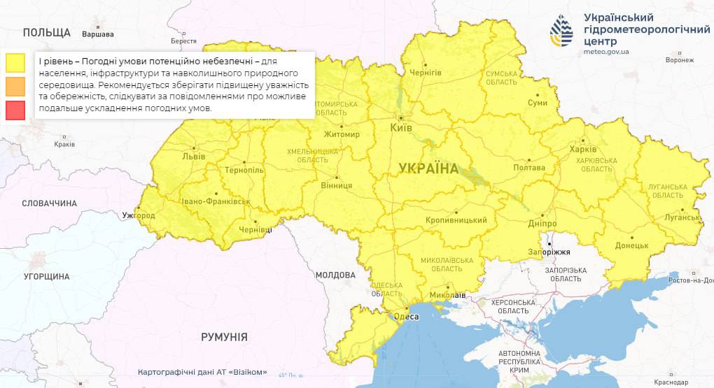 В Україні оголошено перший рівень метеорологічної небезпеки, – Укргідрометцентр