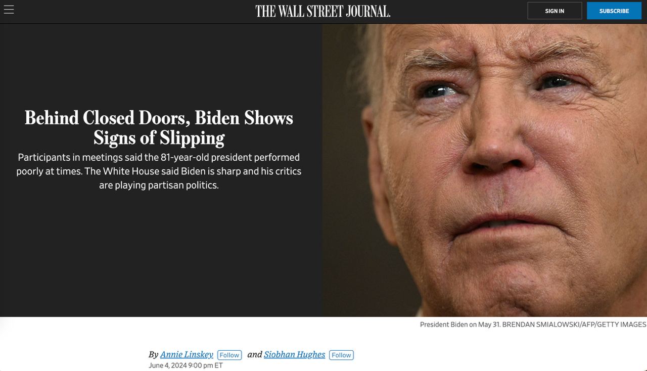 The Wall Street Journal: Учасники зустрічей із Байденом вважають, що його стан погіршується