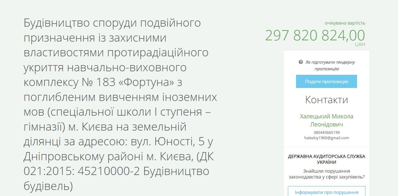 Укриття за 298 млн грн планують збудувати в гімназії №183 "Фортуна" у Дніпровському районі столиці.