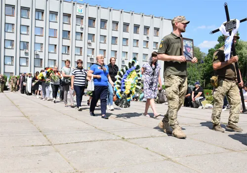 У четвер, 6 червня, жителі Шепетівки, стоячи на колінах, провели захисника в останню земну дорогу.