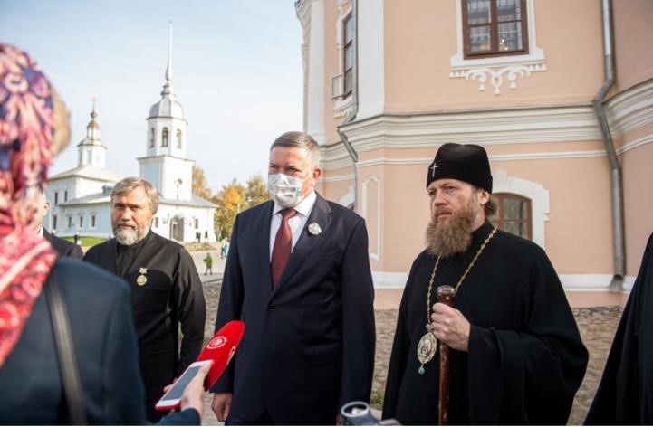 Урочистий момент освячення собору у Вологді був зафіксований на фото, де Новинський позував спільно з митрополитом Вологодським і Кирилівським Савою. Тим самим митрополитом Савою, який у грудні 2022 р. їздив на окуповані території для звершення молебню для воїнів РФ і благословення на перемогу.