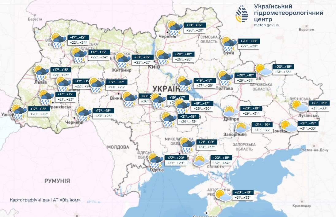 При цьому, завтра буде від +22 до +34 градусів тепла.