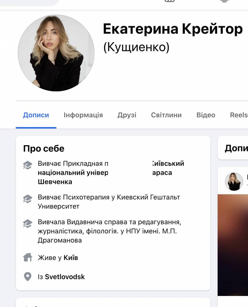 Психотерапевт Катерина Анатоліївна Крейтор офіційно займається дітьми, тобто вона нібито домогосподарка. У 2023 році її чоловік не задекларував жодних доходів дружини, окрім соцвиплат. Однак реальність, звісно, інакша. Про це ми розповімо у наступних публікаціях, а поки що пропонуємо переглянути це фото.