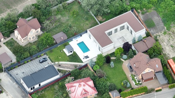Як ми бачимо, на мальовничій галявині знаходиться розкішний будинок площею 250-300 кв.м., люксові автівки, бокси на чотири автівки, басейн та СПА центр з басейном. Цікаво, навіщо гараж на чотири автівки, якщо сім’я володіє одним автомобілем, згідно з декларацією. А басейн та СПА центр коштує понад 150 тис. доларів США. На які ж гроші? Якщо заощаджень сім’ї всього задекларовано до одного млн грн.