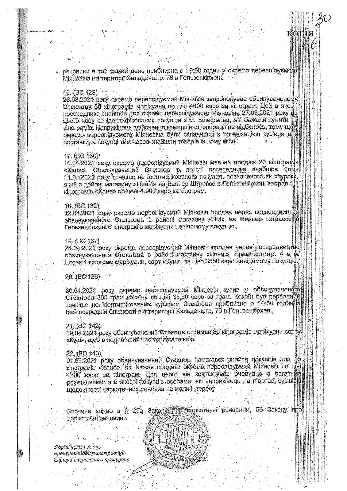 Там теж чорним по білому написано: «продав 2 кілограми кокаїну за 66 000 євро», «купив кілограм гашишу за 5 євро», «продав 32 кілограми гашишу з прибутком у 13 000 євро», «купив 17 кілограмів марихуани», кілограмів марихуани з метою продажу»… Усього – 22 епізоди.