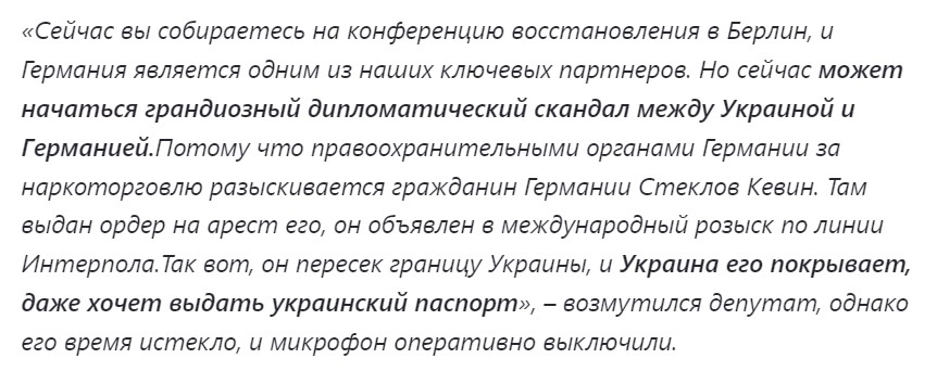 Рота йому, звичайно, заткнули, вимкнувши мікрофон. Але Німеччина – не Україна, і Бундестаг – не Верховна Рада. І там роти не затикатимуть. А їжа для противників України – благодатна, її не забаряться розтиражувати всі проросійські (та й не тільки) ЗМІ. Хто такий Кевін Стеклов і що він робить на території України? Як потрапив сюди і чому Герасимов заявив, що Україна його покриває?