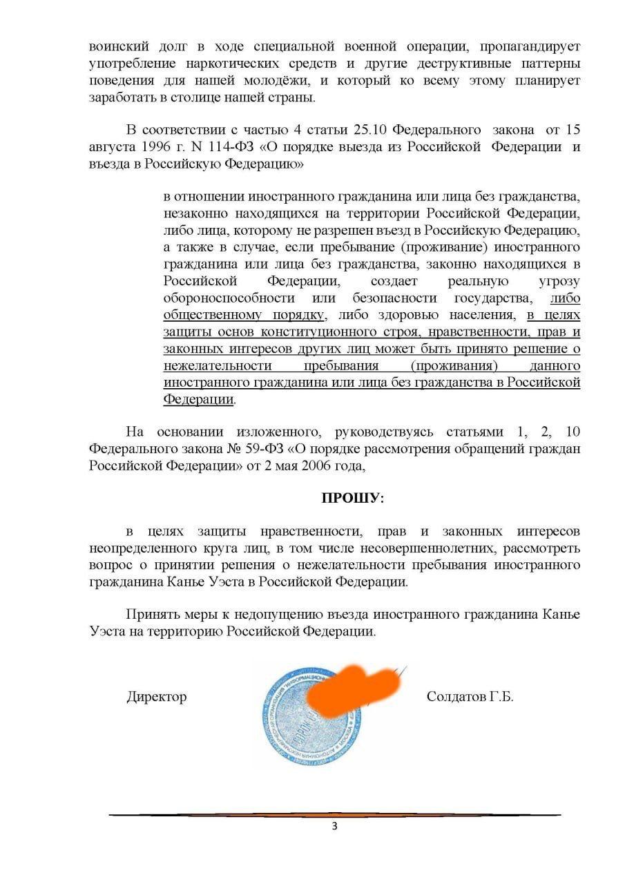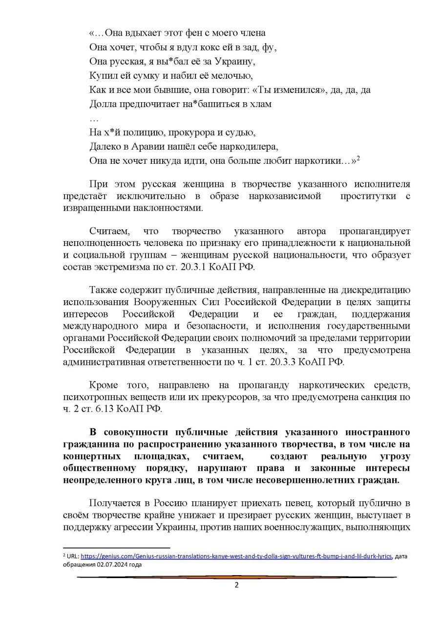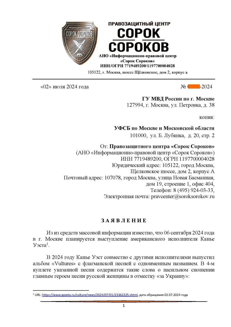 Генпрокуратуру РФ закликають перевірити тексти Каньє Веста, який у вихідні відвідав Москву і, за даними ЗМІ, планує на осінь концерт у столиці РФ.