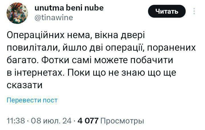Лікар повідомляє, що в «Охматдиті» прильотом зруйновано операційні.