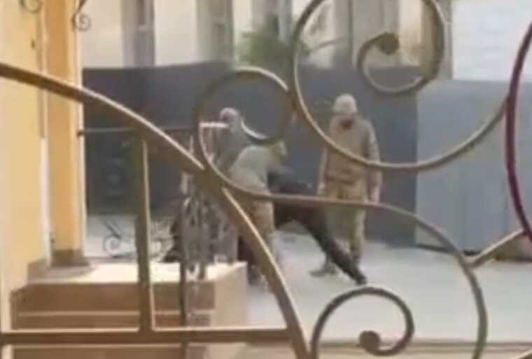 Силова мобілізація чоловіка з сумками на залізничному вокзалі Мукачева.