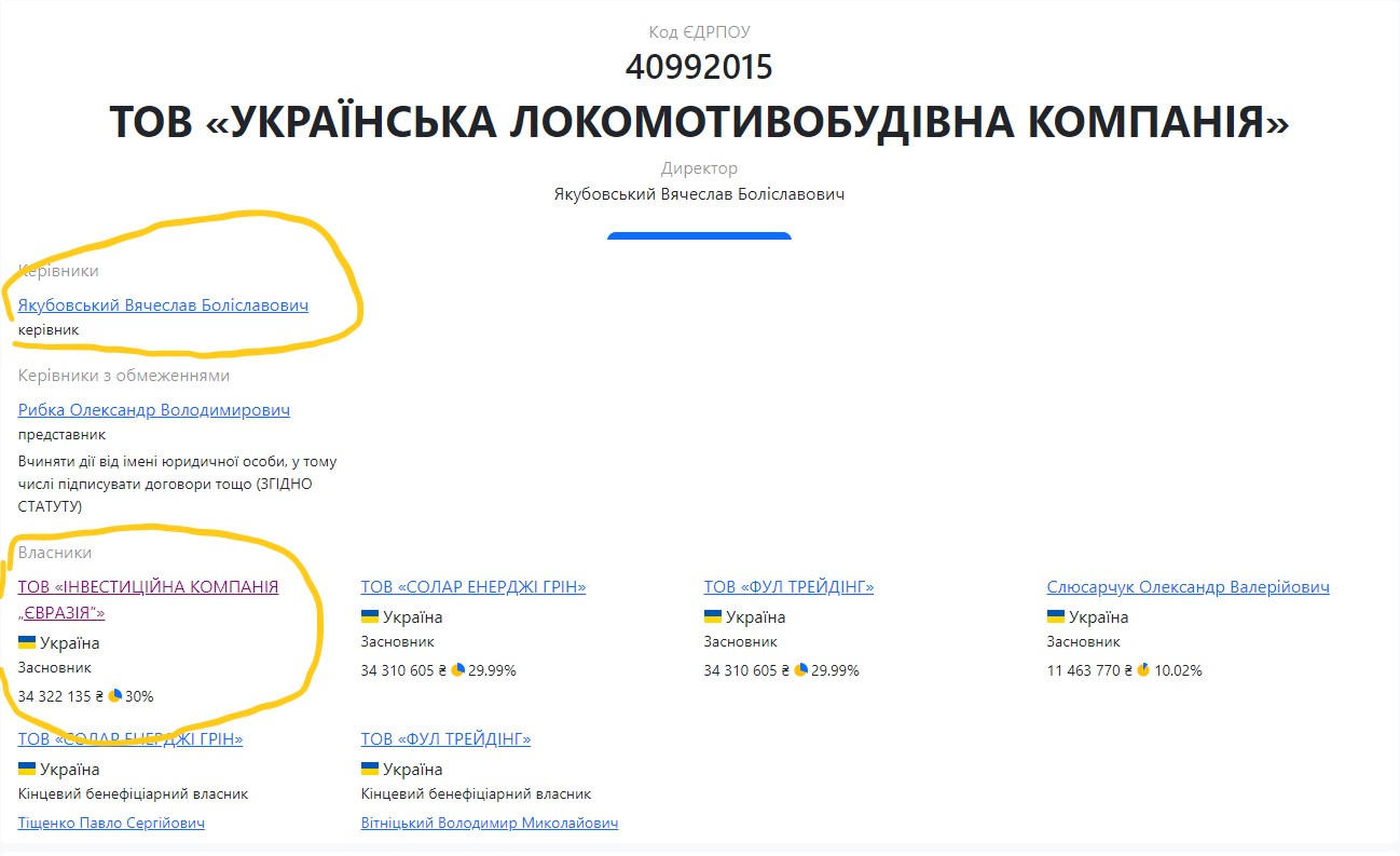Але виявилося, що Юлія Павліченко була одним із засновників ТОВ «Українська локомотивобудівна компанія». І, варто подивитися її реєстраційні дані, стає зрозумілим таке занепокоєння Дмитра Адамовського чищенням інтернету. Тому що тут весь набір наших героїв: