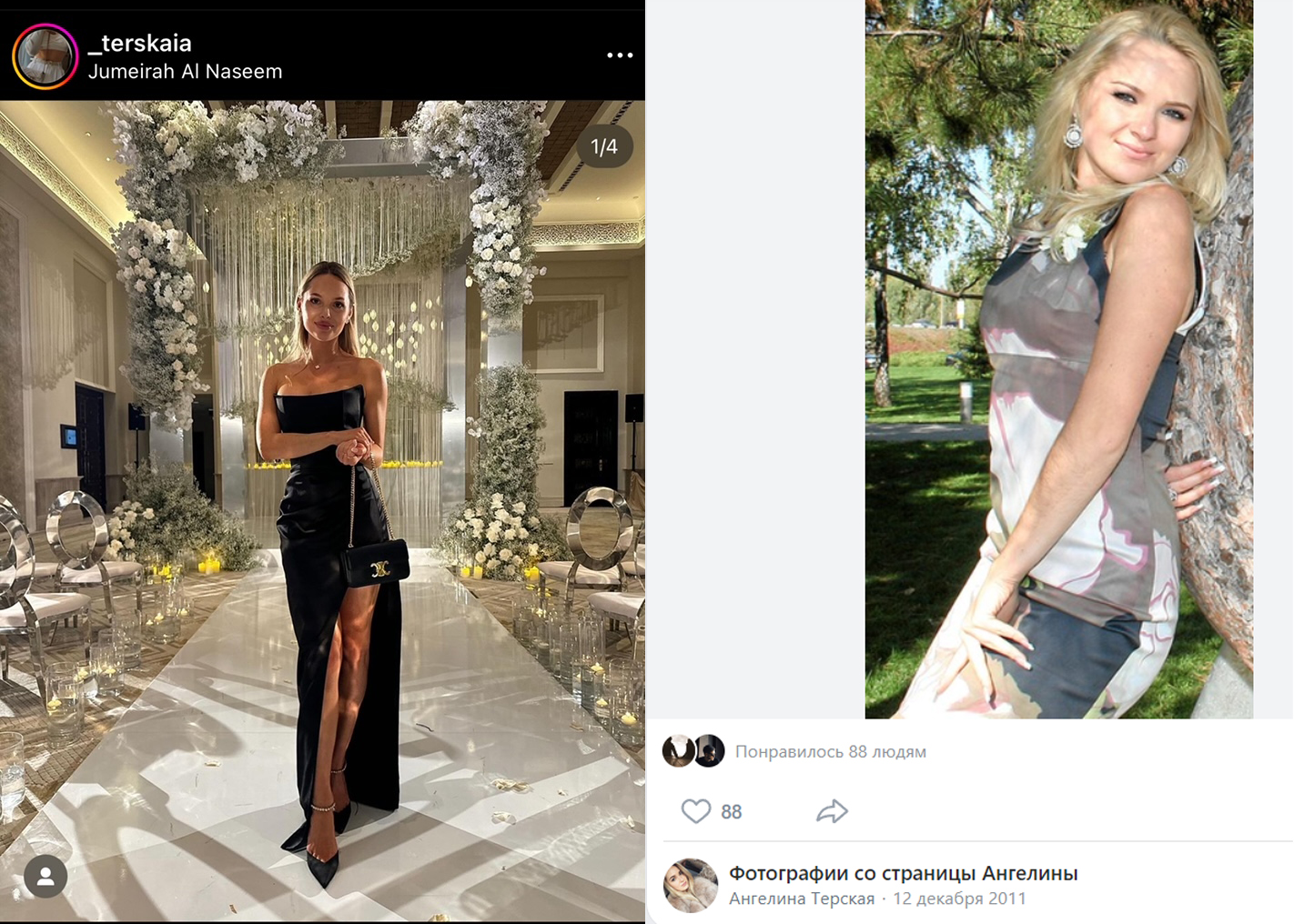 У мережі повідомляли, що нареченого начебто звуть Владислав і він бізнесмен. Ангеліна Терська насправді тривалий час зустрічалась з чоловіком на ім’я Владислав, з яким в неї є чимало фотографій у нині забороненій російській соціальній мережі ВКонтакте. З ним вони зокрема літали в Барселону та Дубай у 2013 році. Але цей чоловік зовсім не схожий на того, який вів до шлюбу Ангеліну на озері Комо.