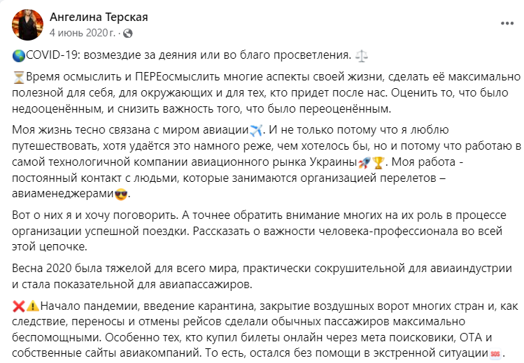 Ангеліна Терська родом з невеличкого селища міського типу Магдалинівка Дніпропетровської області. Тривалий час працювала в туристичній агенції, яку у 2020 році називала «найтехнологічнішою компанією авіаційного ринку».