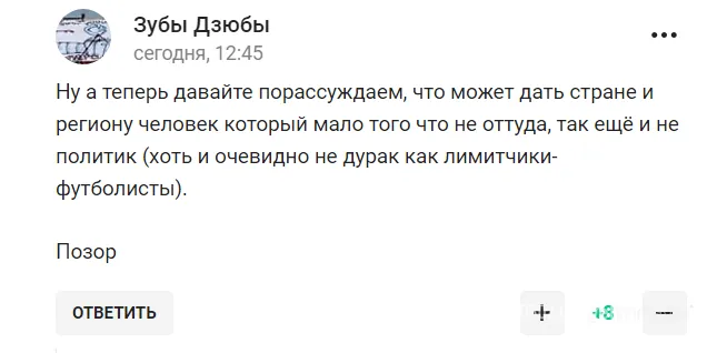 У коментарях уболівальники з Росії влаштували обструкцію ексукраїнцеві. Карякіна називають пристосуванцем.