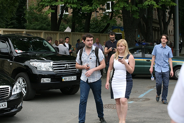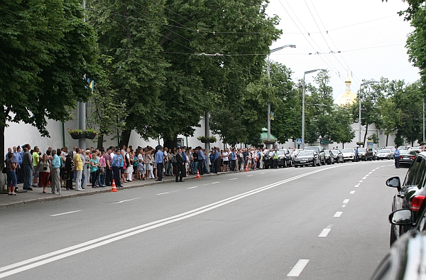 Нечисленний натовп простих киян і журналістів вишикувався біля входу, дивитися на живих мешканців телеекранів.