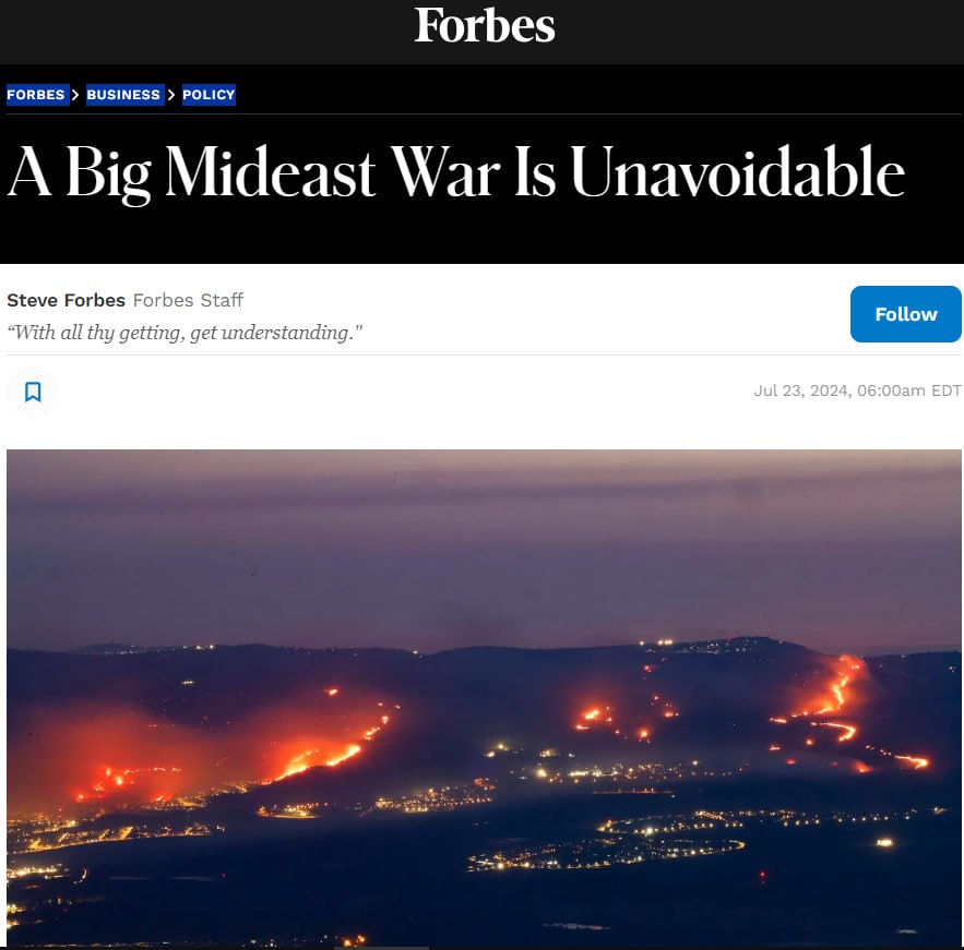 Головний редактор Forbes Стів Форбс вважає, що велика близькосхідна війна неминуча.