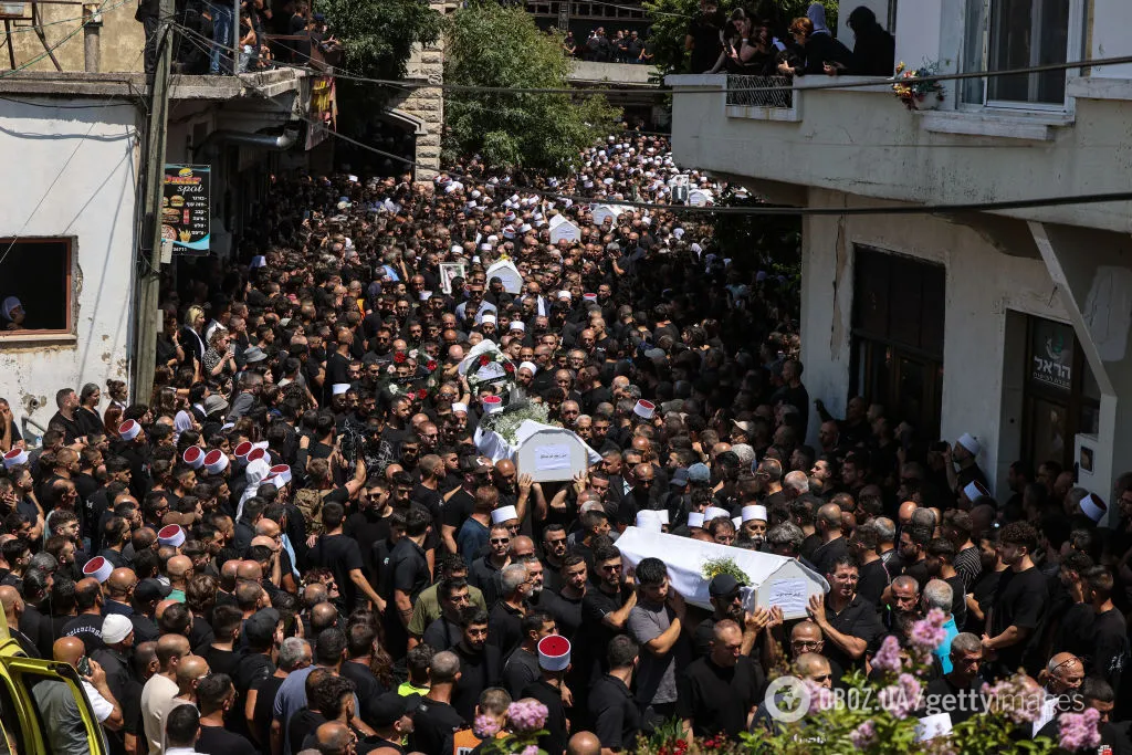 В Ізраїлі тисячі людей зібралися в Мадждаль-Шамсі на похороні дітей, які загинули внаслідок ракетного обстрілу з боку терористичної організації "Хезболла". Варто зазначити, що поява міністрів спровокувала скандал під час церемонії.
