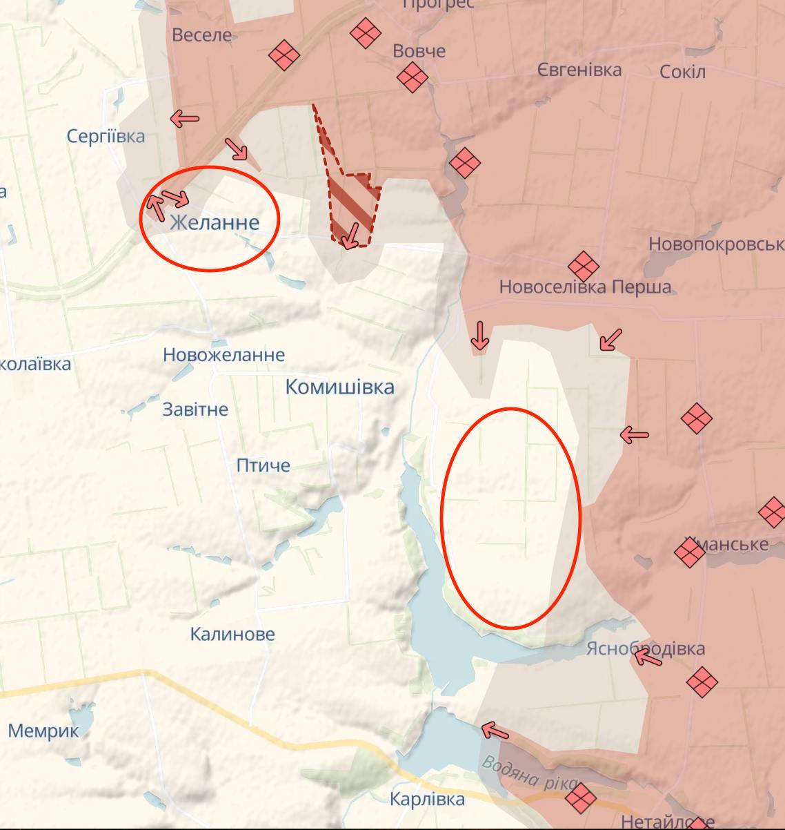 Зокрема, тактичний успіх у РФ є в районі Бажаного та Сергіївки, яке росіяни намагаються обійти, що "ставить під загрозу" угруповання ЗСУ на східному березі річки Вовча.
