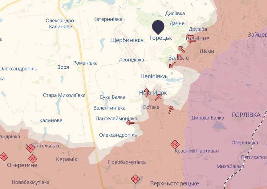 "Дійсно ворог просувається до адміністративних меж міста Торецька. Але в місто він не зайшов і перебуває поблизу безпосередньо адміністративних меж самого міста", – наголосив Василь Чинчик.