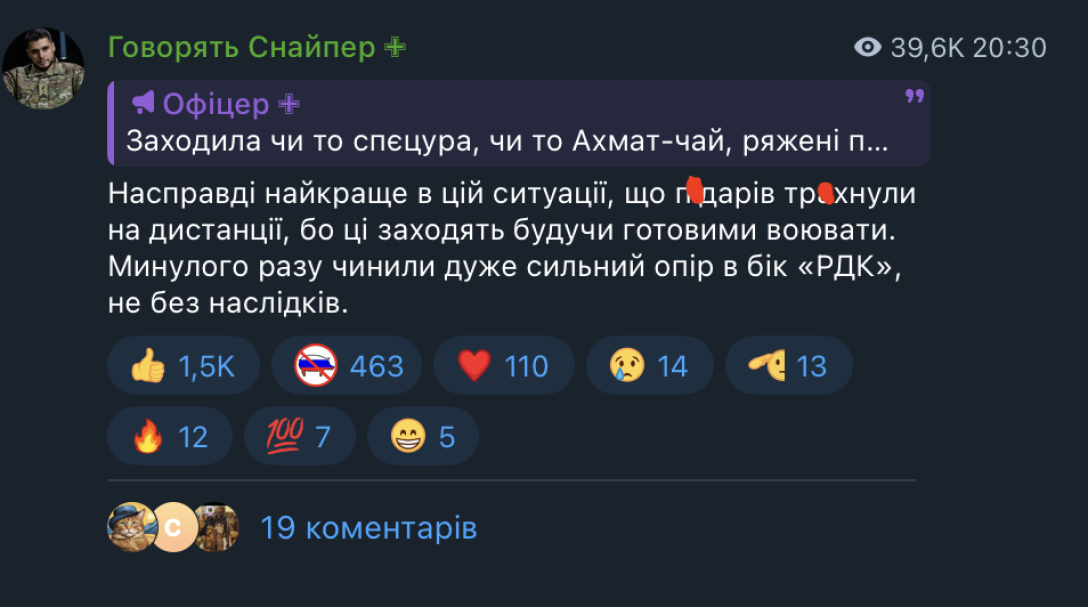 "Руснявая спецура плаче, що їх перекидають на напрямок Курська, для "потушения пожара". Уже декілька підрозділів ССО русні працюють там, але як ми бачимо поки без результатів. Але не слід їх недооцінювати, особливо "сенежей", — сказав боєць.