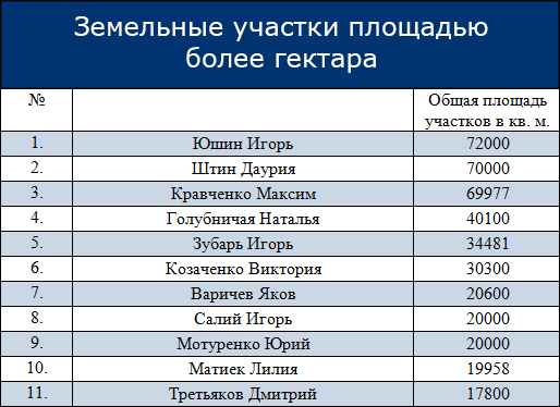 Например, десяток претендентов в антикоррупционные прокуроры могут похвастаться обладанием (совместно с членами своих семей) земельными участками площадью более гектара.