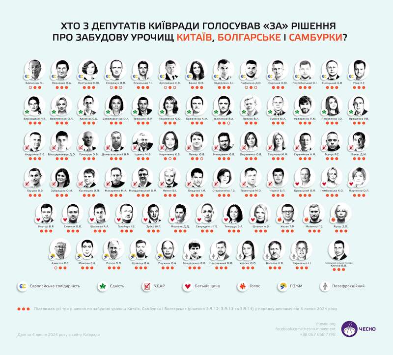 В одному із попередніх матеріалів Рух ЧЕСНО детально розглянув хід скандального голосування, в рамках якого Київрада ухвалила одразу кілька забудов, що можуть нашкодити ландшафту міста та збереженню архітектурної спадщини.