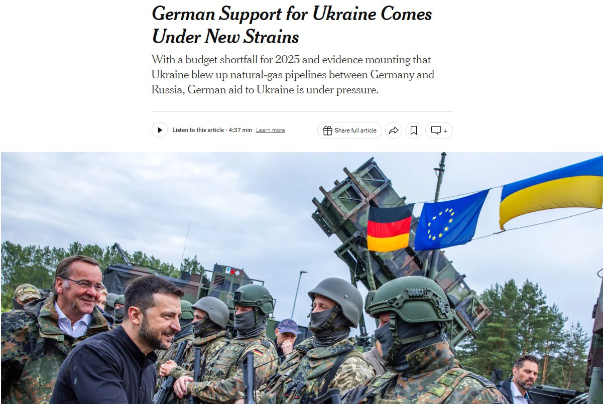 За даними видання, питання щодо підтримки України виникають на тлі гострих розбіжностей у Німеччині щодо бюджету та зростаючої кількості доказів того, що Київ може бути причетний до підривів "Північних потоків".