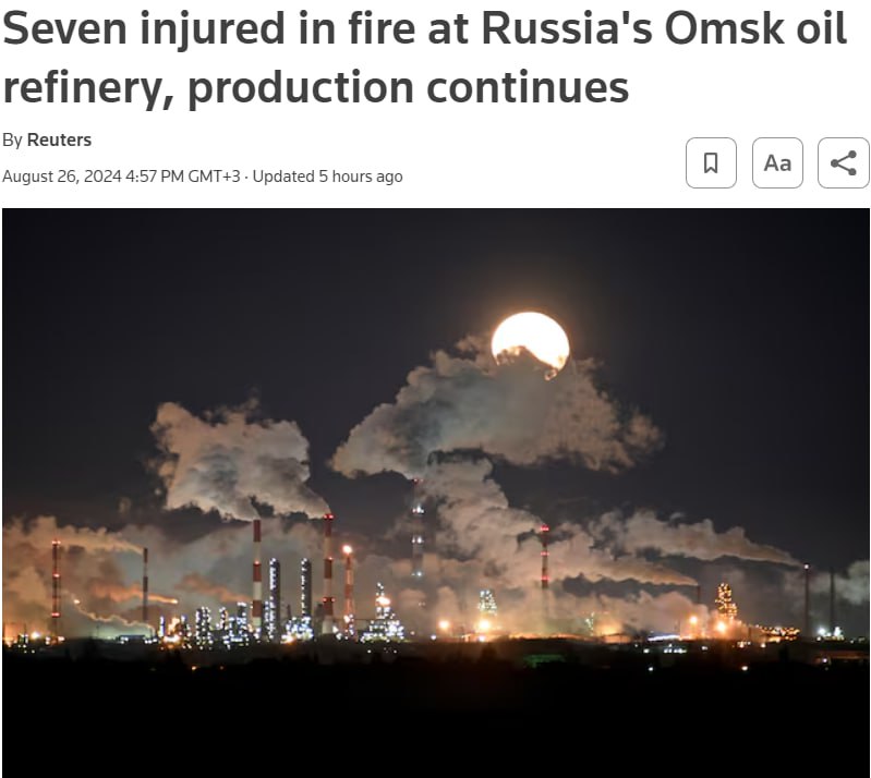 Reuters: Найбільший НПЗ Росії - Омський після сьогоднішнього вибуху призупинив майже половину своїх потужностей