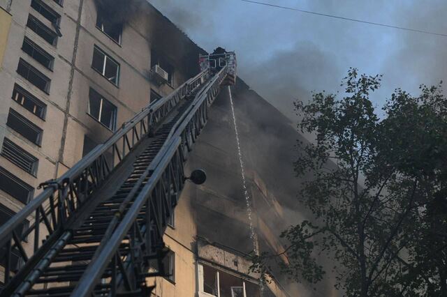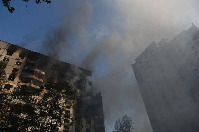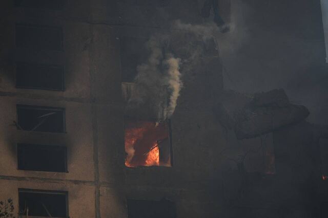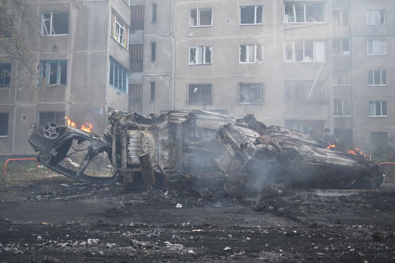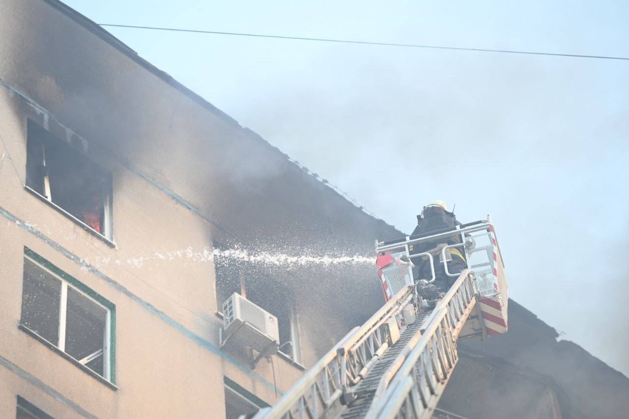 - Індустріальний район, там влучання по 12-поверховому будинку. Пошкоджено 5 автомобілів. Три людини загинули.