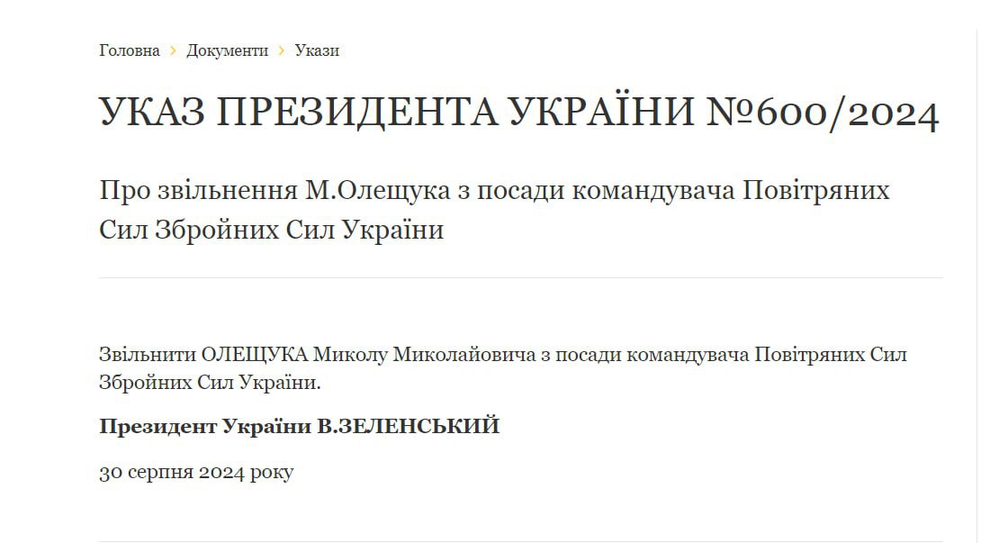 Теги: УвольнениезвільненняЗеленскийВС ВСУЗСУВСУОлещук Николай
