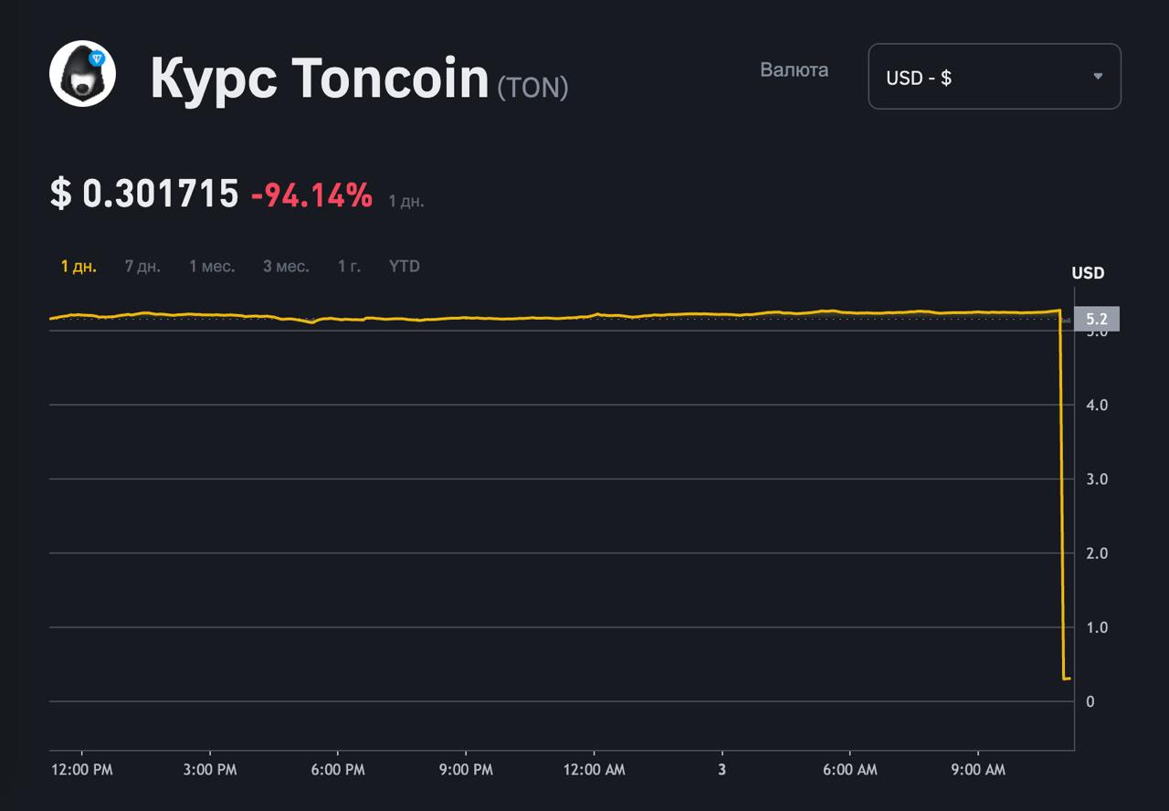Криптовалюта Telegram Toncoin різко впала в ціні майже до нуля