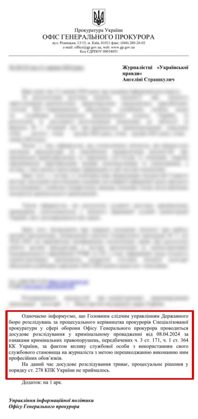 Відповідь ОГП на запит ЗМІ