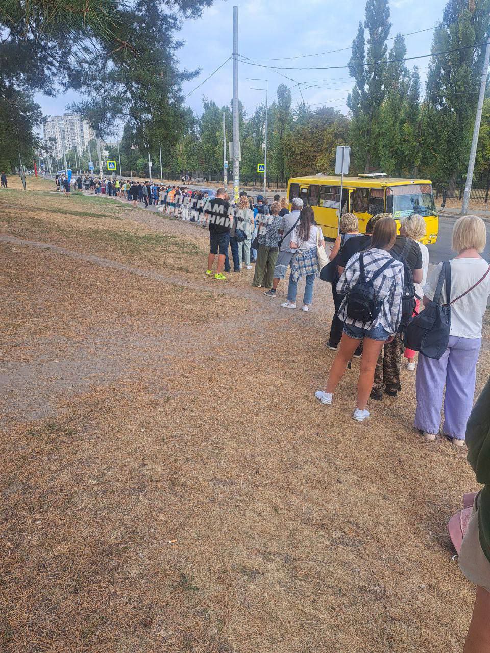 Сформувалися довгі черги на маршрутки, а також у метро, щоби переправитися з лівого берега на правий.