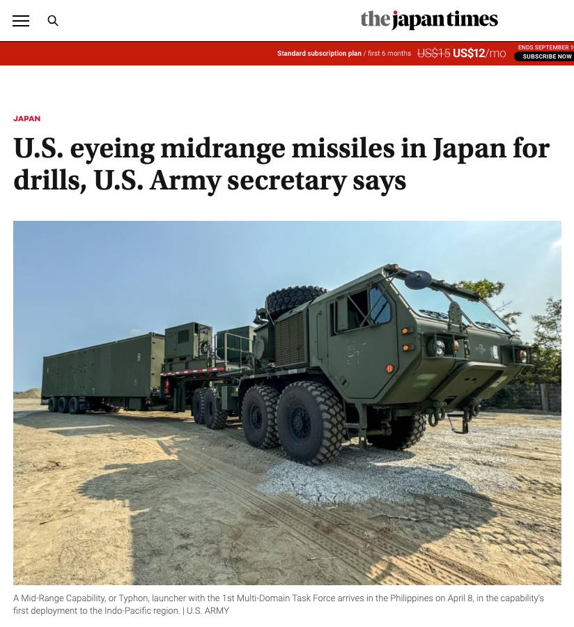 США планують розгорнути в Японії ракетні системи Typhon для проведення спільних військових навчань із силами самооборони країни.