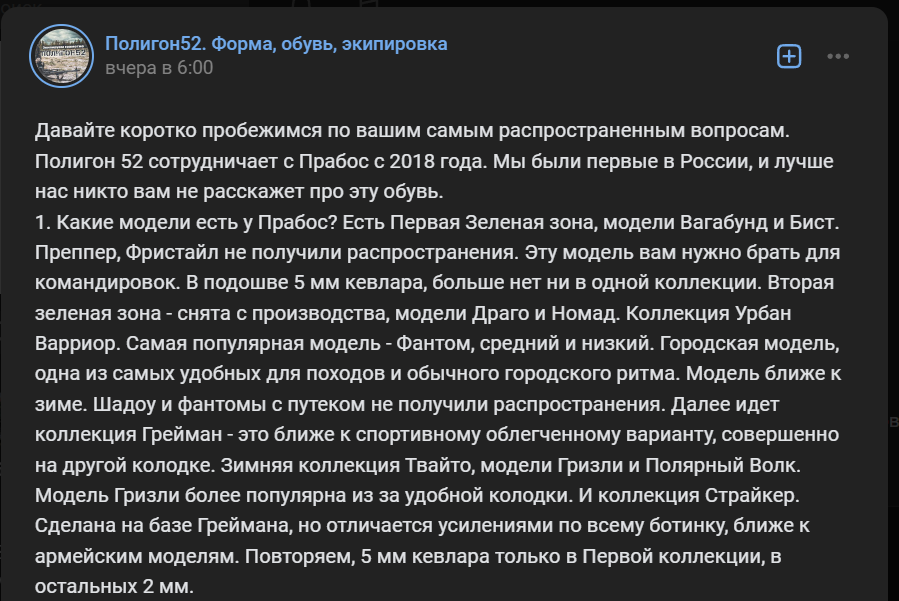 З іншого тексту компанії, опублікованого 26 вересня 2022 року, випливає, що черевики зі Славичина продаються «Полігоном 52» у Росії з 2018 року і нібито були протестовані «у підрозділах Міністерства оборони, Російської (національної) гвардії чи (секретної служби) ФСБ», серед інших.