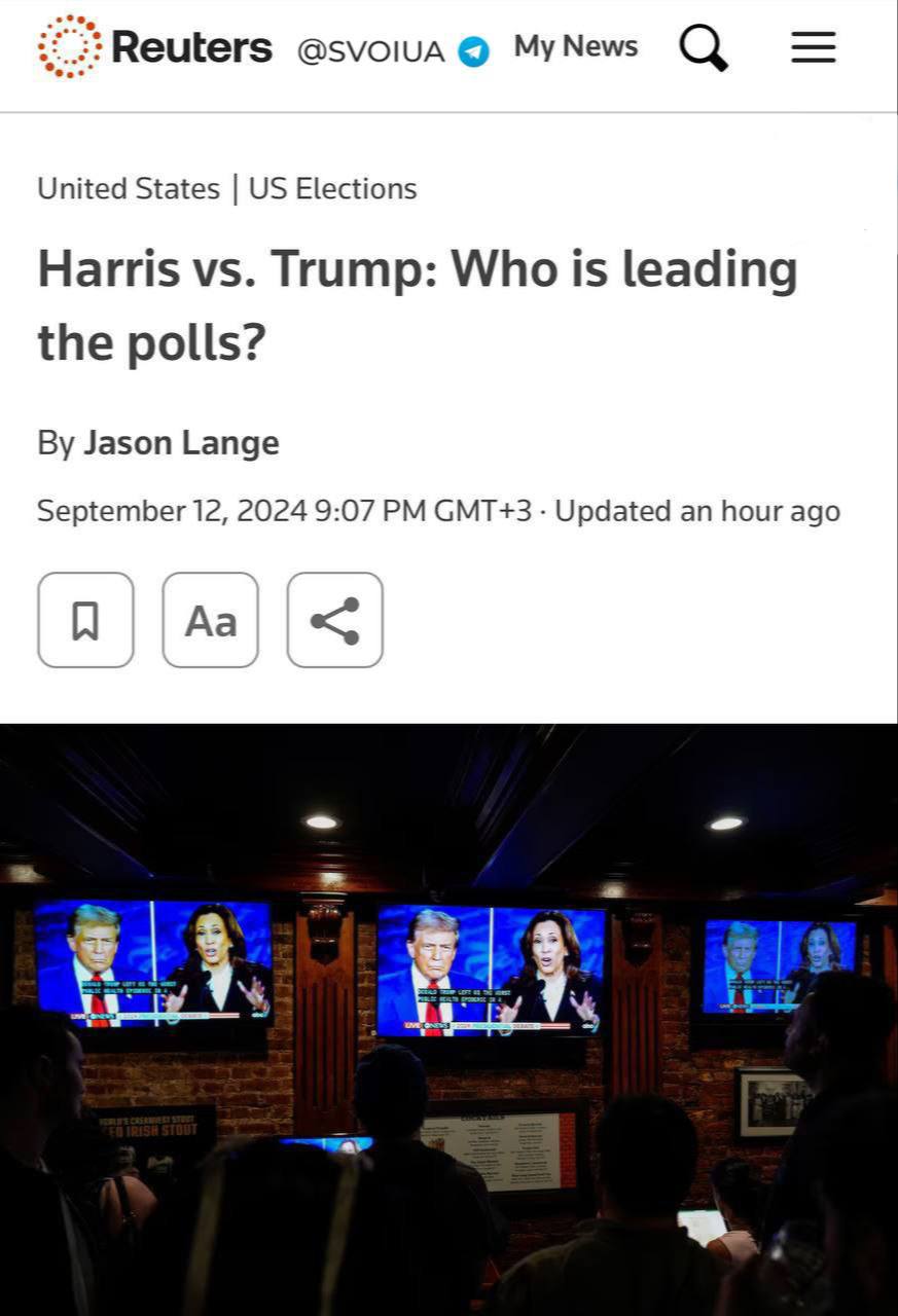 Після дебатів Гарріс випереджає Трампа на 5%, — Reuters