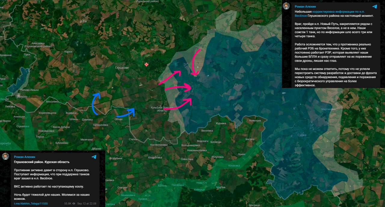 Тим часом, російські військкори пишуть, що ЗСУ також наступають на Курщині і б’ють у фланг росіянам, які пішли у контрнаступ.