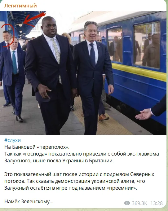 "На Банковій "переполох". Оскільки "пани" показово привезли із собою ексголовкома Залужного, нині посла України у Британії. Це знаковий крок після історії з підривом Північних потоків. Так би мовити, демонстрація українській еліті, що Залужний залишається у грі під назвою "наступник". Натяк Зеленському", – поділився фантазіями "Легітимний".
