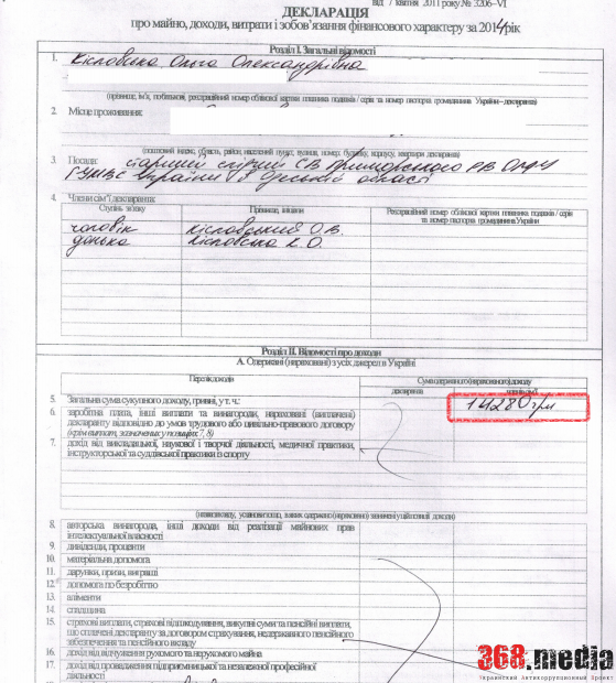 Это не все «странности» финансового положения Кисловского. Оказывается, что его супруга работает старшим следователем Приморского райотдела милиции. В феврале 2015 года она заполнила декларацию в рамках закона «Об очищении власти». В ней Ольга Кисловская указала, что ее супруг заработал за прошлый год 14,3 тыс. гривен. Напомним, что сам политик задекларировал 42,8 тыс. гривен. Каким образом доход Кисловского вырос почти на 30 тыс. гривен редакции 368.media пока неизвестно.