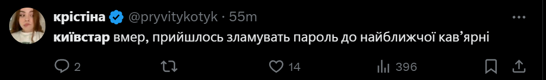 Поки компанія займається вирішенням проблеми, українці активно діляться своїми реакціями на відключення мережі в соцмережах Х та Facebook. Дехто навіть жартує, що "Київстар" зовсім "вмер", тому "необхідно зламувати пароль у найближчій кав’ярні".