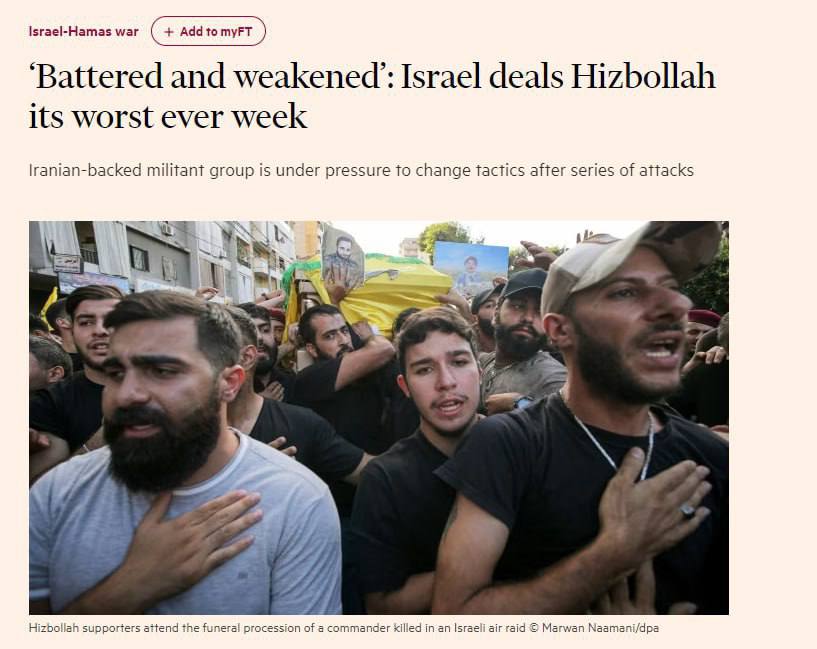 15 високопоставлених представників "Хезболли" було ліквідовано під час наради, повідомляє Financial Times.