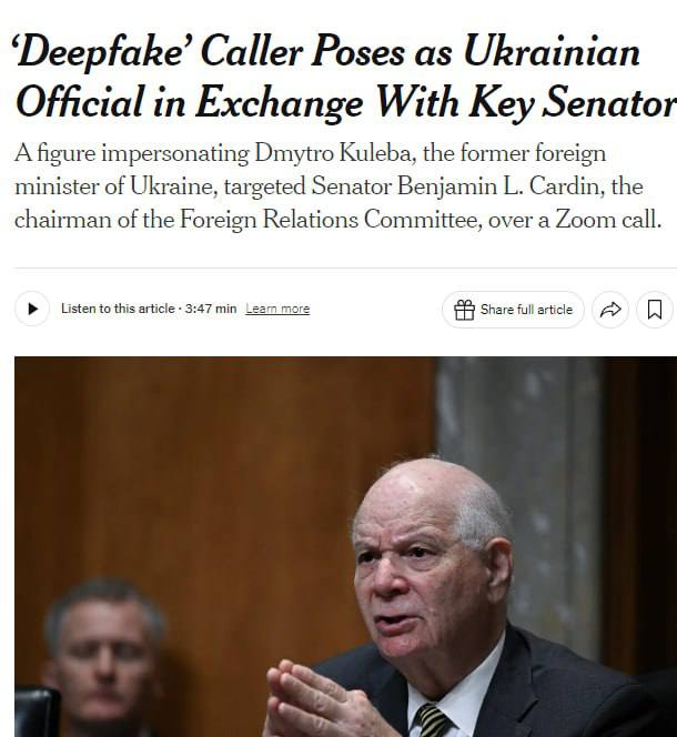 Голові Комітету закордонних справ США Бенджаміну Кардіну спочатку на електронну пошту прийшло повідомлення нібито від Кулеби з проханням зателефонувати через Zoom. Коли співрозмовник почав ставити політично мотивовані питання, Кардін завершив розмову та повідомив Держдепартамент.